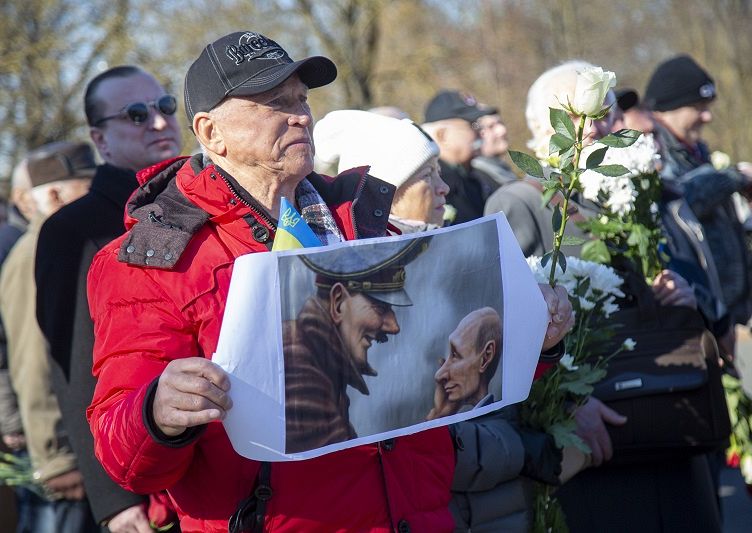 Šodien pie Brīvības pieminekļa bija ieradusies sieviete, kas pēdējās dienās kļuvusi populāra sociālajos tīklos, jo apmeklēja veikalu, nesot iepirkumu somu ar Krievijas armijas karā pret Ukrainu izmantoto simbolu "Z". Šodien viņas apģērbu rotā pie krūtīm piešūts Krievijas karodziņš.