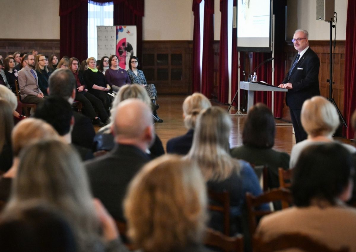 "Un tas ir normāli. Ar gandarījumu mēs atzīmējam, ka, piemēram, ukraiņu pārdevējas veikalos savus pircējus jau arvien biežāk uzrunā mūsu kopējā valsts valodā - tostarp arī tos, kuri šeit dzīvo jau gadu desmitus un līdz šim ne pušplēsta vārda nav spējuši izdvest latviski," pauda Valsts prezidents.