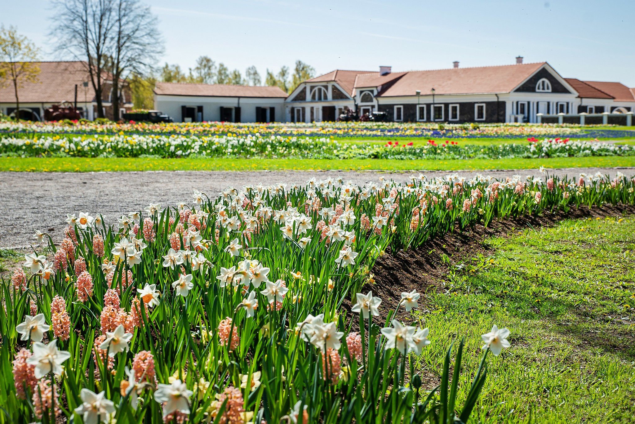 Lielā ziedēšana muižā sākas ar agrākajiem pavasara ziediem – vizbulītēm, sniedzītēm, muskarēm, hiacintēm un narcisēm, bet sezonai turpinoties, parku piepildīs arī simtiem tulpju šķirņu, veidojot nepārtraukti mainīgu krāsu panorāmu.
