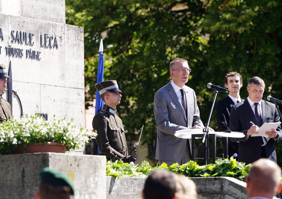 "Mēs labi saprotam, ka gatavībai cīnīties par savu brīvību un neatkarību ir jābūt vienmēr. Mēs labi redzam, kas šobrīd notiek Eiropā. Mēs labi redzam Krievijas agresiju pret Ukrainu. Mēs labi redzam to, ka mūsu neatkarība un brīvība ne visiem ir pa prātam. Bet gan šodien, gan ikdienā mēs apliecinām gatavību to aizstāvēt atkal un atkal. Mēs neesam vieni. Ar mums ir kopā mūsu NATO sabiedrotie, ar mums ir kopā mūsu Eiropas partneri, un mēs esam kopā ar Ukrainas tautu un karavīriem viņu cīņā par brīvību un neatkarību," uzsvēra Rinkēvičs.