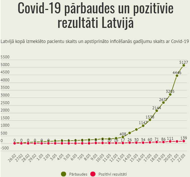 Aizvadītājā diennaktī veikts 681 izmeklējums personām ar aizdomām par saslimšanu ar Covid-19, savukārt līdz šim Latvijā kopumā veikti 5127 šādi izmeklējumi.