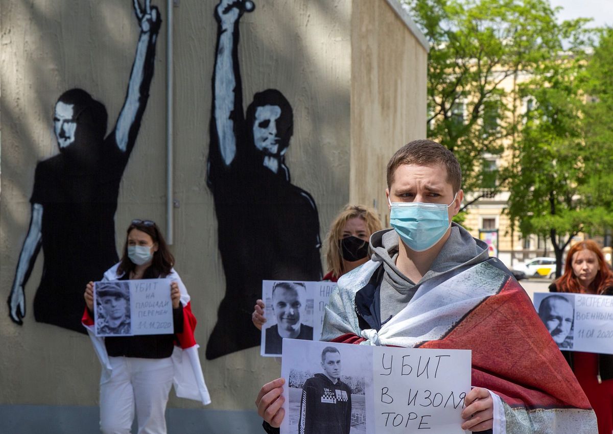 Piketētājiem rokās bija plakāti ar protestu laikā nogalināto cilvēku fotogrāfijām un datumiem, kā arī vairāki dalībnieki rokās un ap pleciem turēja Baltkrievijas vēsturisko karogu. Vēl uz viena plakāta bija uzzīmēts Rīgas mērs Mārtiņš Staķis (AP) attēlots kā supervaronis.